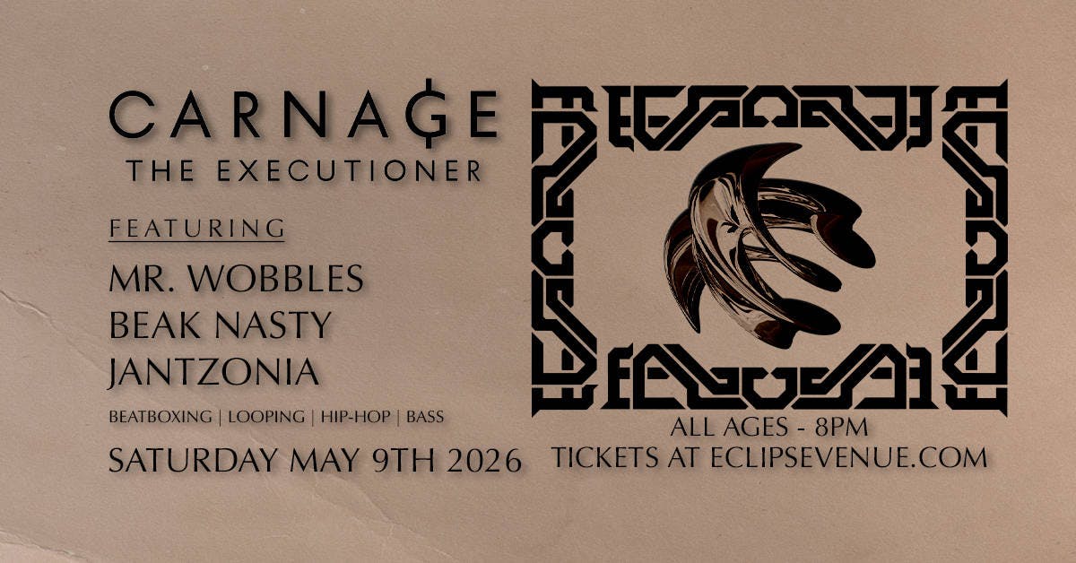 A music fan since childhood, Carnage The Executioner – who started out rapping as T-Swift – has filled his memory bank with thousands of references from all genres to draw from for his work. Carnage’s start as a human beat boxer has taken on a life of its own. He now uses technology like looping and effects pedals commonly used by guitarists. He enhances the experience of a live Hip-Hop show by allowing his audiences to hear original Carnage material and unique improvisations and spot-on recreations of popular songs. Carnage uses this same musical knowledge and technology to create custom, studio human beatbox tracks. His audio vision via mouth music can be heard on albums by Hip-Hop heavyweights Aesop Rock and R.A. The Rugged Man.
