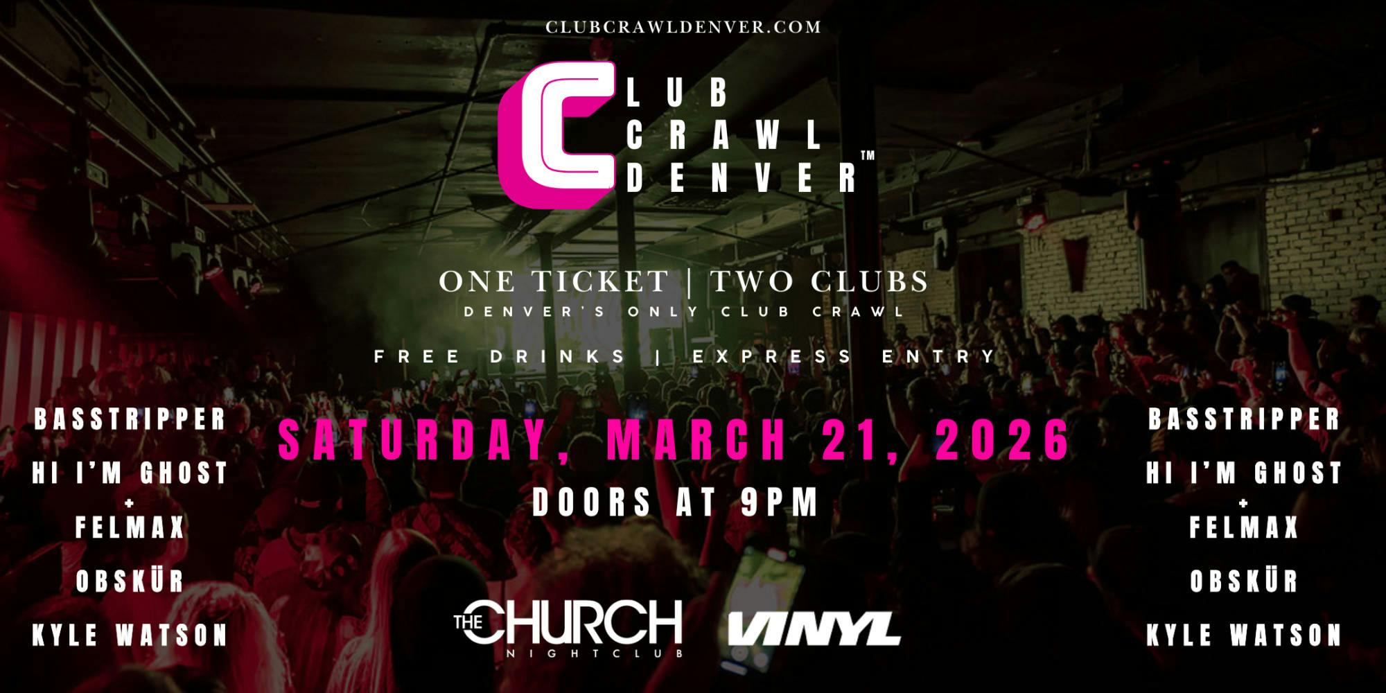 Club Crawl is Denver's newest nightlife experience that brings you VIP express entry to both Church Nightclub and Club Vinyl and two complimentary drink tickets, all with one ticket.