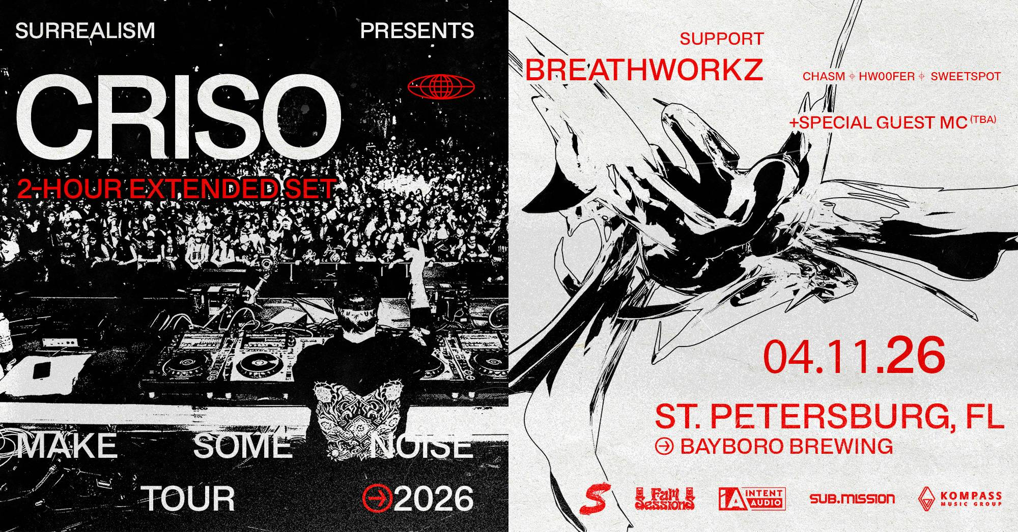 Join us 4/11/2026 for a special 2 hour extended set with Criso and a special TBA MC at Bayboro Brewing in St Petersburg FL.