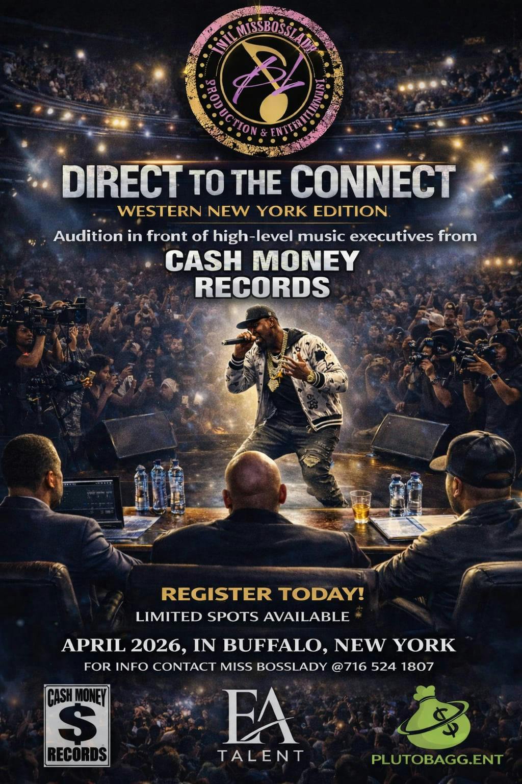 Cash Money Records and EA Talent have teamed up with Ms. Boss Lady to bring you something brand new to the area. We are Spotlighting local talent to preform infront of Top music Executives to showcase their talent and hopes of getting signed. each artist will be recvieving feed back right after their preformance for all to see and hear. Founded on the belief that music can change lives, Direct to Connect focuses on empowerment, education, and access- providing artists with the tools, discipline and exposure needed to transitionfrom local stages to professional industry pathways. This is your chance to see upcoming artists and get in on the ground floor of watching their carrer take off.
