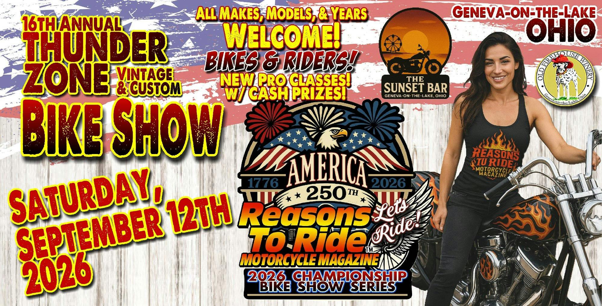 This will be our 16th year hosting a BIKE SHOW at Geneva-on-the-Lake during Thunder on the Strip - and once again, we're thinking that this just might be OUR BIGGEST YET! And yes, we've been saying that for the last few... and each year has gotten BIGGER and BIGGER! (Well, not counting '24 when it snowed!)