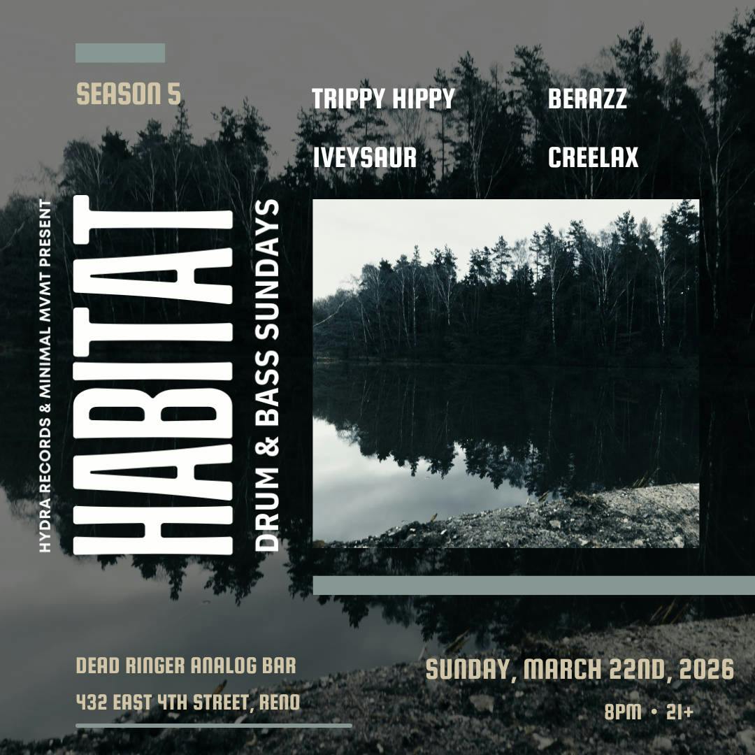 Hydra Records & Dead Ringer Analog Bar present HABITAT Drum & Bass Sundays! Join us for our 5th season & monthly installment of Reno's premier Drum & Bass series.