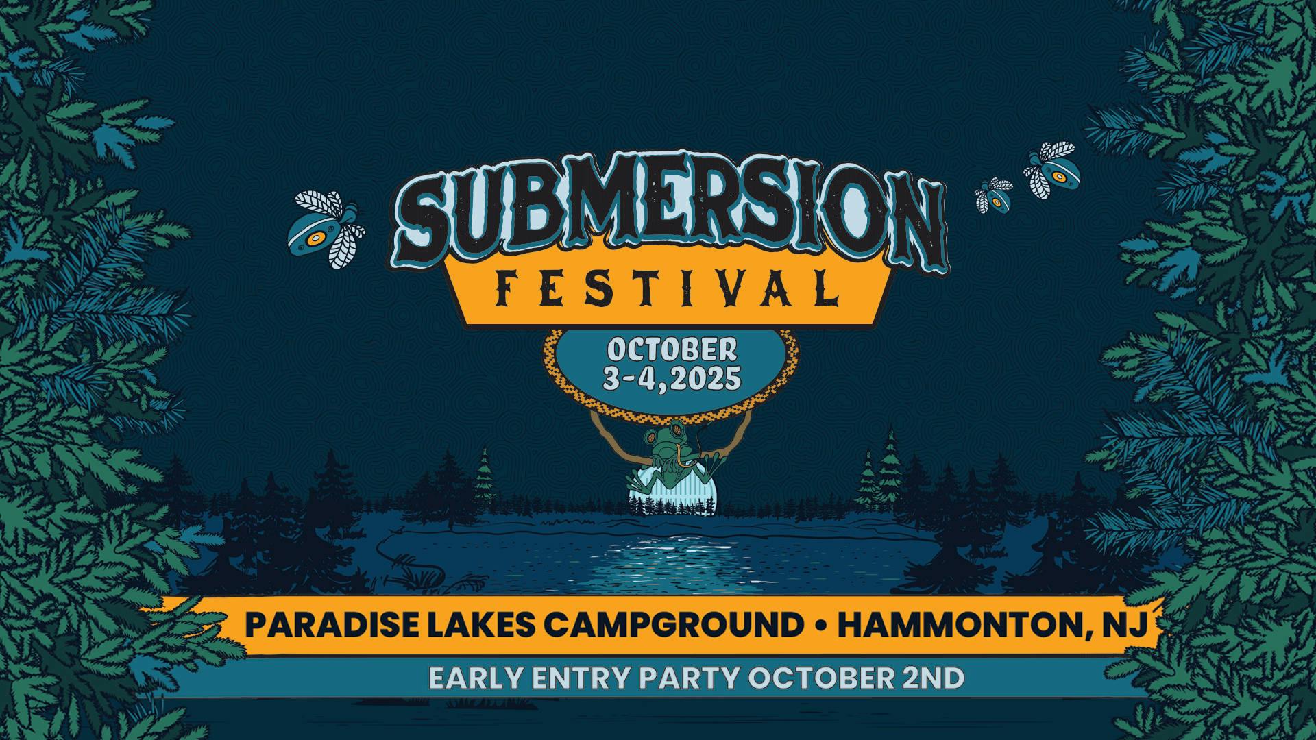 Get ready for an extraordinary music and arts experience at Submersion Festival 2025. From October 2-4, join us at the stunning Paradise Lakes Campground in Hammonton, NJ. Submerge yourself in three days of top-tier performances, captivating art, and an intimate community atmosphere. Curated by Aspire Higher & The Rust Music, Submersion delivers exceptional sound, impeccable music curation, and the perfect balance of big festival excitement with an intimate feel. Our fifth annual festival is set to be the best one yet.